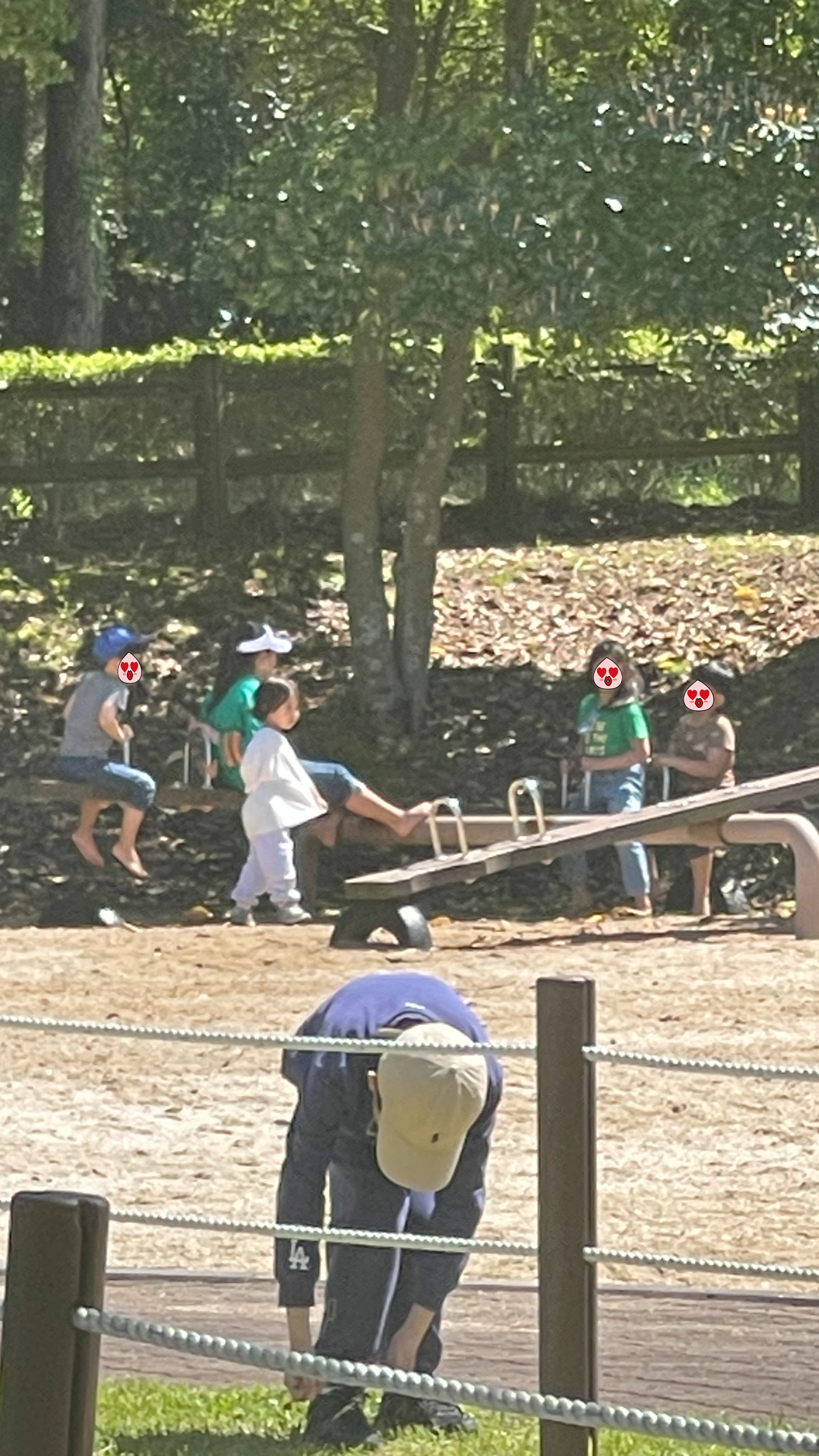 공중 그물망 놀이를 한번 더 해보더니 시소에서 놀고 있는 형아 누나들에게 뛰어간 녀석. 멀리서 그 모습을 지켜보고 있자니... 자기 딴에는 같이 좀 놀아보려고 다가갔는데, E형 인간의 방문이 달갑지 않은지 결국 같이 노는 것엔 실패..