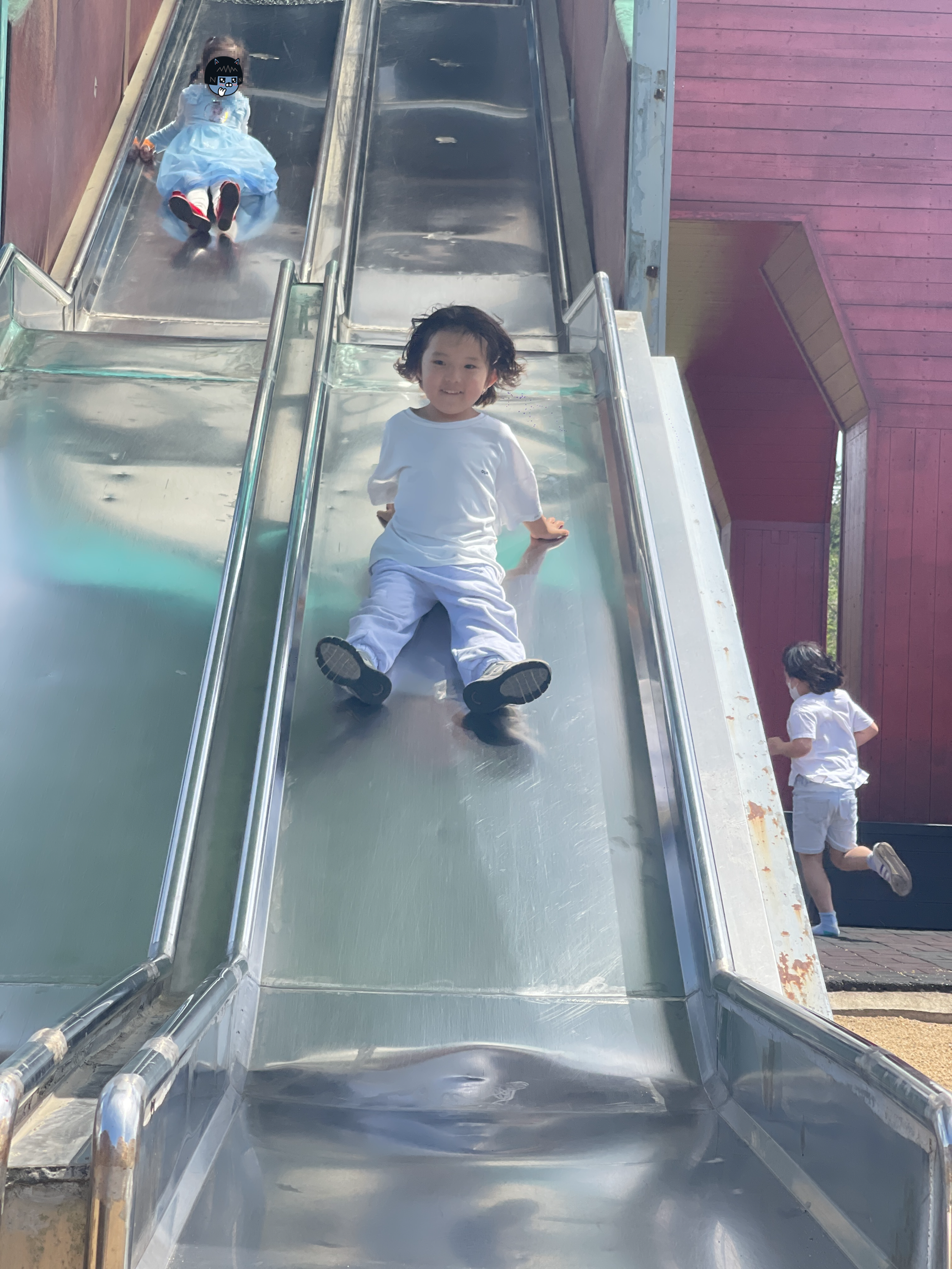 그리고 트로이목마 대형미끄럼틀에서 신나게 미끄럼틀 놀이. 렛츠런파크제주에 있는 놀이터 중 랜드마크격인 트로이목마 미끄럼틀. 엄청난 높이지만 안전장치를 제대로 갖춰놓았고 항상 안전요원들이 지켜보고 있기 때문에 아이들이 재미나게 놀 수 있다. 조금 큰 아이들이나 어른들은 무게때문에 튕겨나갈 정도의 스피드. 아이들이 열심히 놀고 있는데, 여직원들이 중간중간 껴서 타던데.. 거의 미사일 발사 수준으로 날라가는 모습을 보였다.