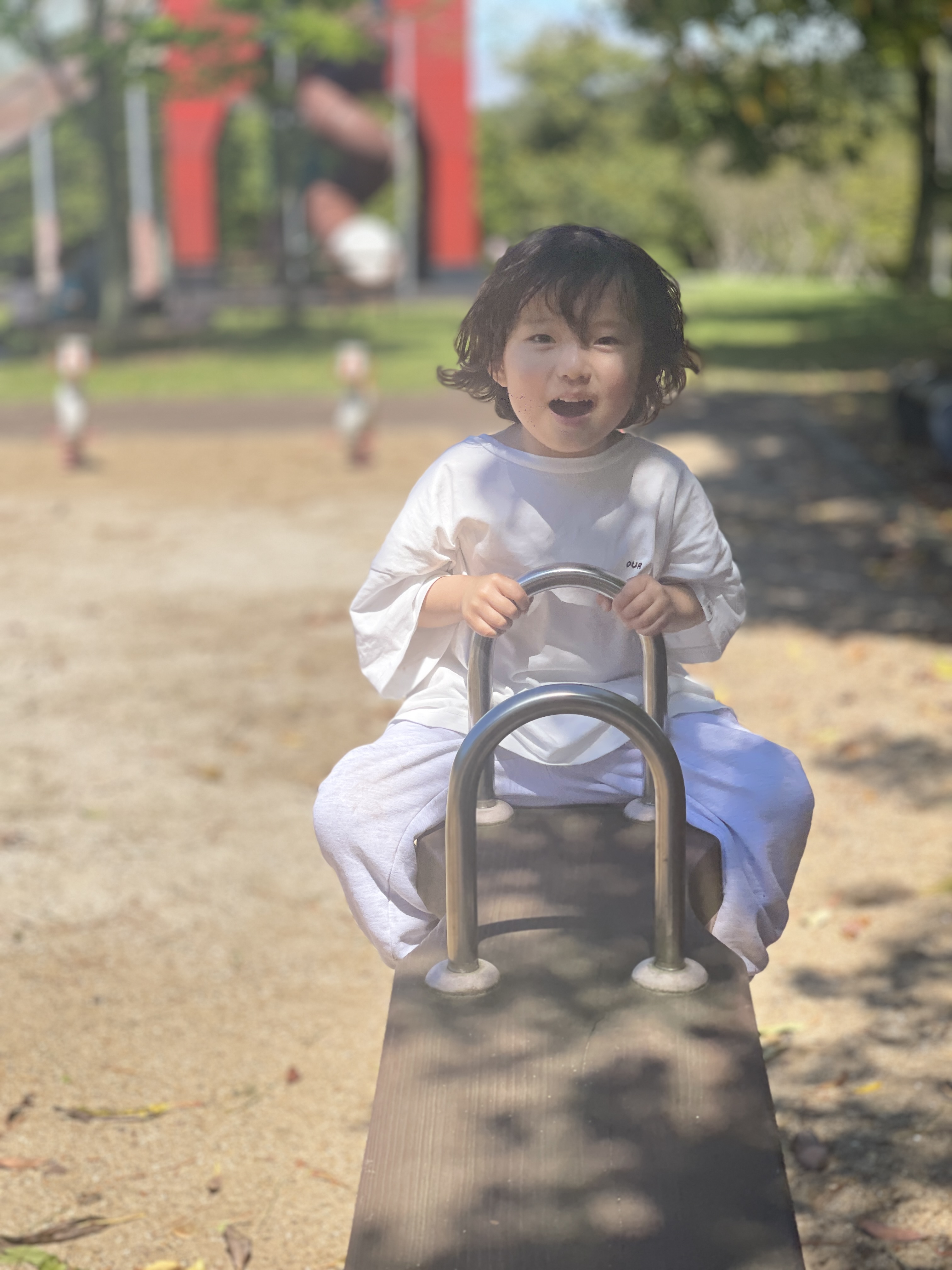 그래도 아빠와 함께 시소를 타니 그새 즐거워진 녀석.