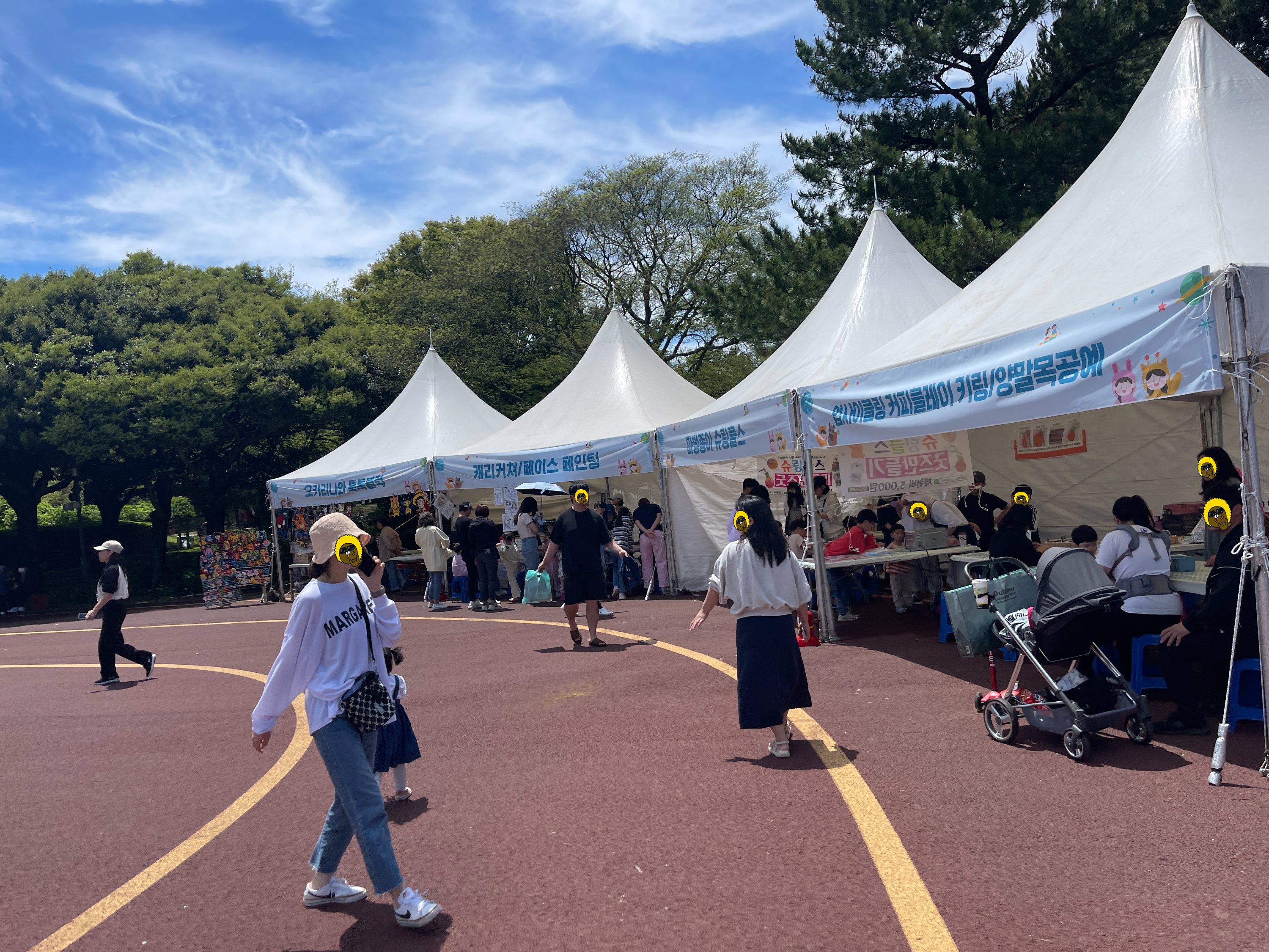 뭔가 제대로 행사분위기가 나는 부스들이 많다. 아기자기한 소품과 장난감을 파는 곳도 있고, 어린이날 행사라 그런지 솜사탕 파는 곳도 있고, 대학생들이 운영하는 푸드존까지.. 제법 풍성하게 갖춘 듯 하다. 폭풍우로 망쳐버린 어린이날을 보상받기라도 하듯 아이와 함께 나온 나들이객들이 꽤 많다.
