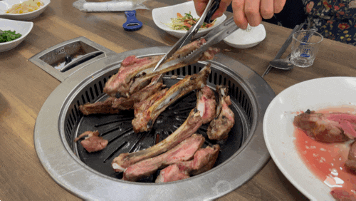 그렇다면.. 그 구이도 전부 내꺼!!! 다른 테이블에 남은채로 구워지던 등갈비 구이는 모두 내자리로 옮겨왔다.