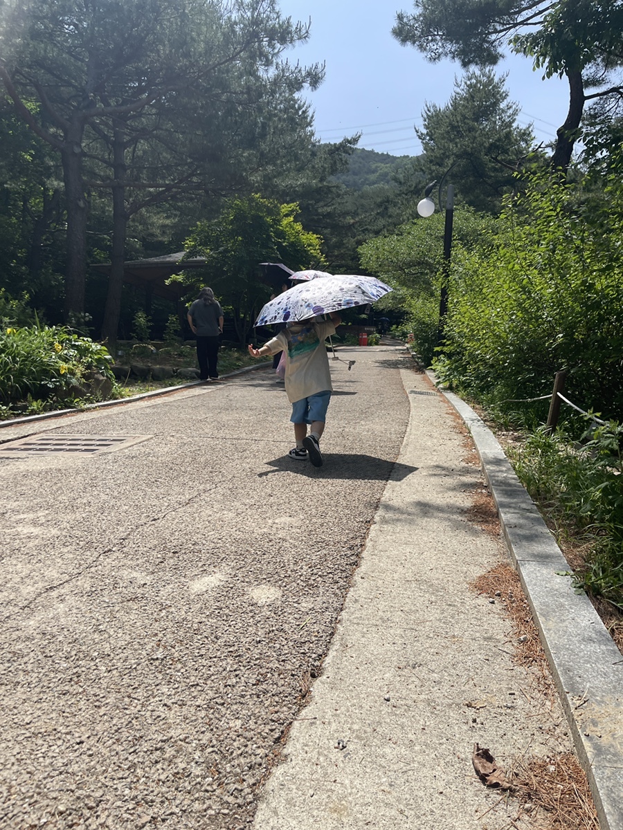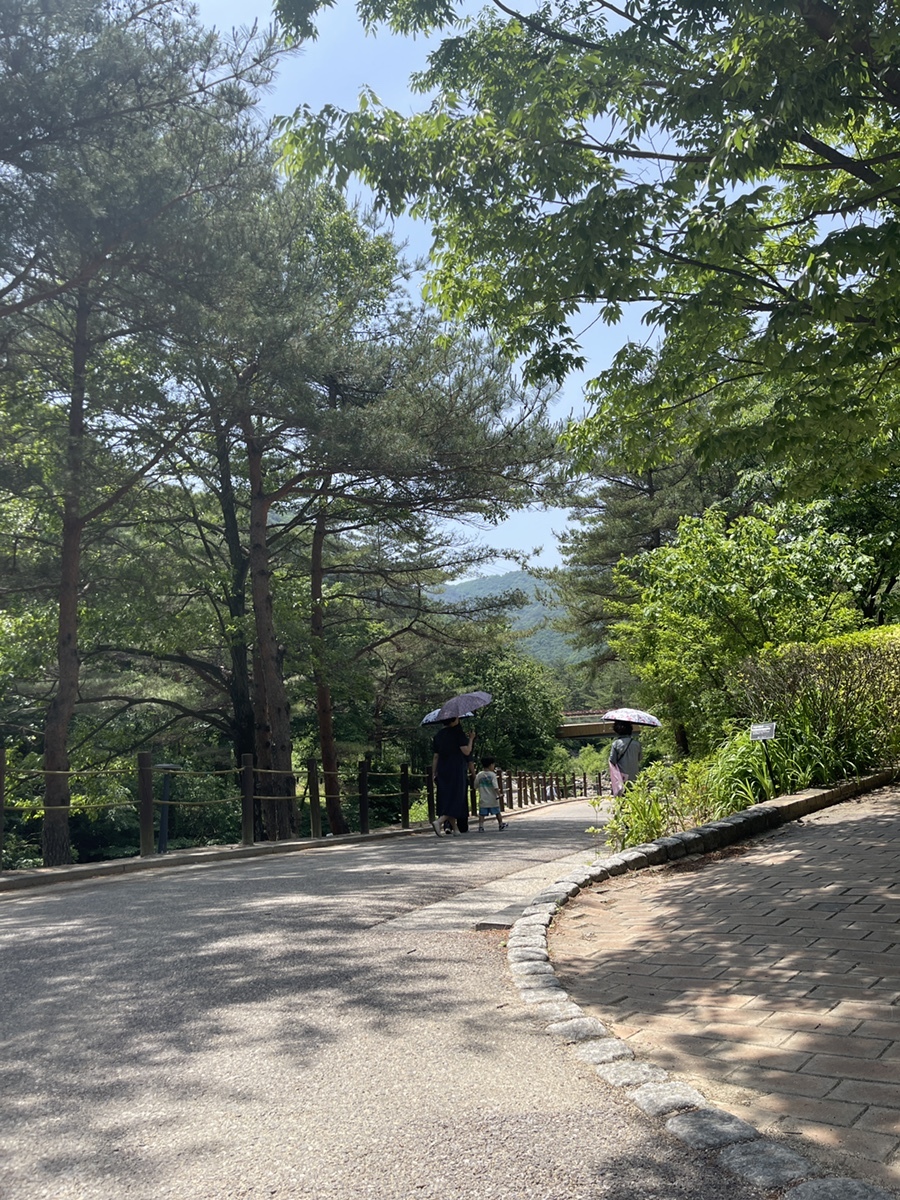30도가 넘는 강릉의 무더위. 아직 여름이 오지도 않았는데 너무 덥다. 이런 날씨에 양산은 필수! 수목원이라 안으로 들어가면 그늘진 곳들이 많지만, 이렇게 햇빛이 내리쬐는 곳에선 자외선이 강할 수 있기 때문에 양산이나 모자를 챙기는 것이 좋다.
