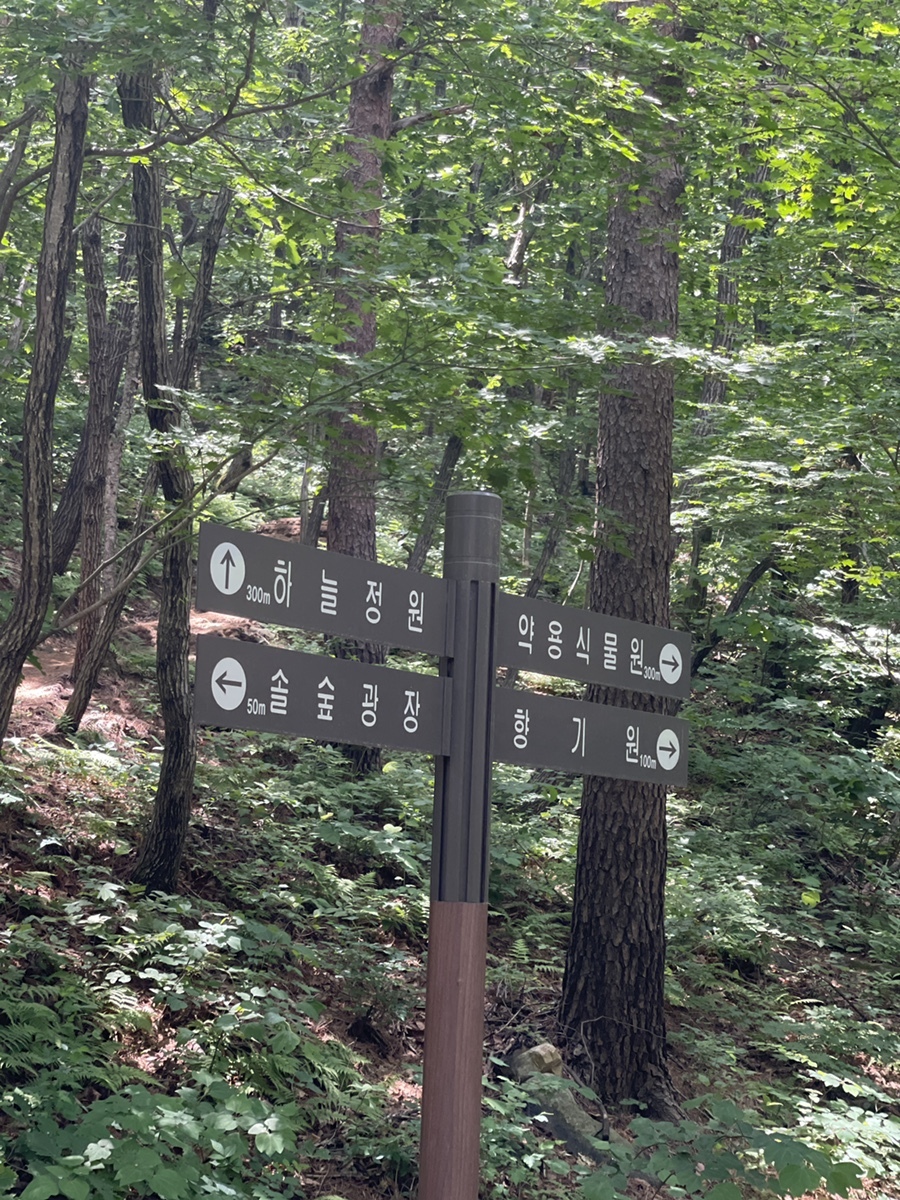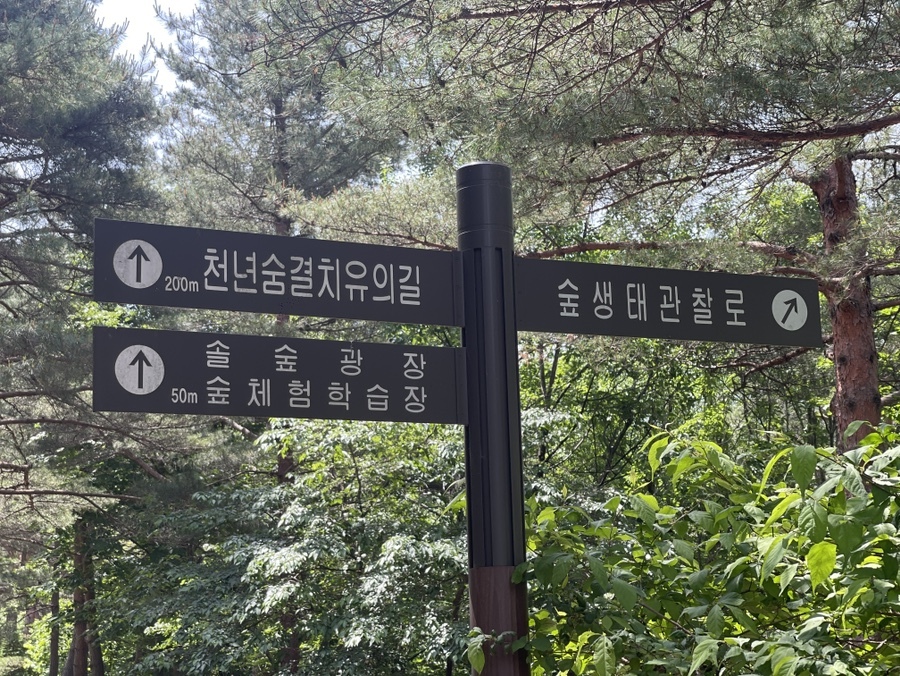 솔향수목원 안에는 이렇게 이정표도 잘 되어 있다. 가고 싶은 길을 따라 어디로든 가면 된다. 다만, 오늘처럼 조금 더운 날씨라면 선택과 집중이 필요! 광대한 수목원을 전부 돌아보기엔 아이와 함께 하는 이 산책길이 험난한 여정이 될 수도 있다.