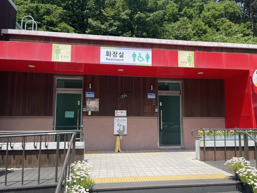 제주에선 숲에 한번 들어가면 화장실을 찾기 힘들어 체험 전에 볼일을 다 보고 들어가야 했는데, 솔향수목원 안에는 화장실이 잘 마련되어 있어서 아이와 다니기 좋다. 응급상황 발생 시 대처하기 좋은 솔향수목원 ^^