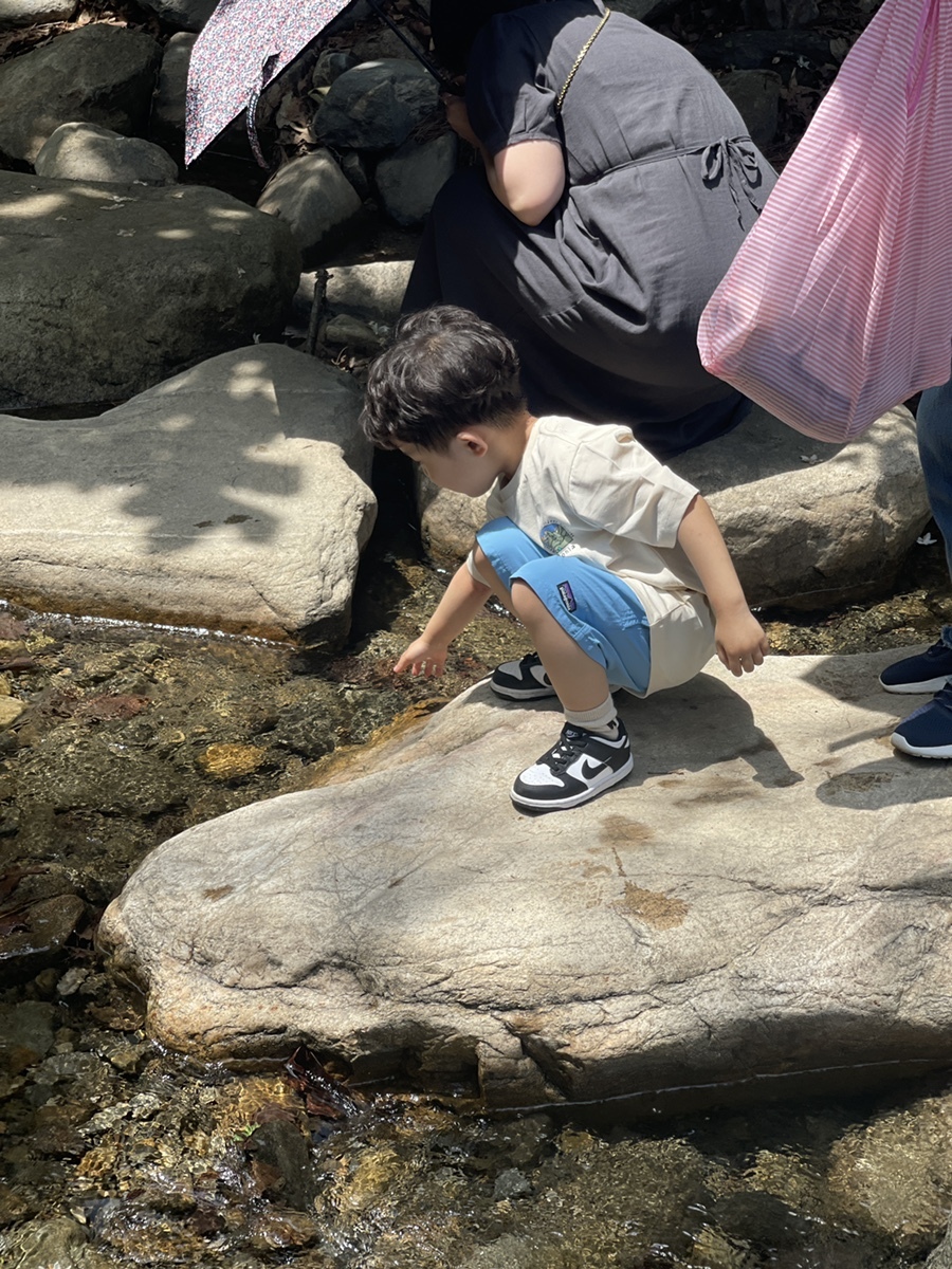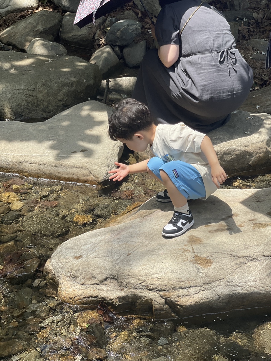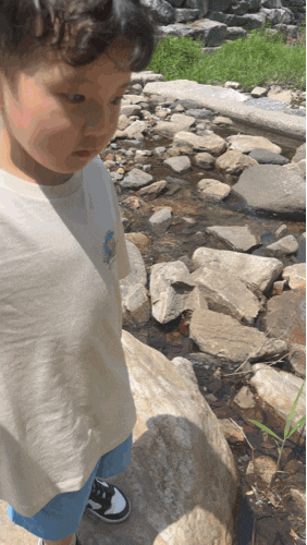 잠시 쉬고난 뒤 밖으로 나가려는데 고모와 함께 하트모양 바위를 본 것 같다며 다시 냇가로 내려가는 녀석. 폴짝폴짝 뛰기도 하고 성큼성큼 바위 사이를 건너기도 하고.... 요즘 너무 겁이 없어진 녀석...