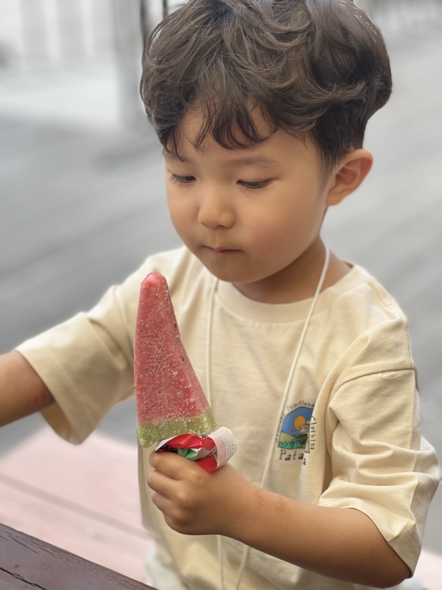 하지만... 역시나 수박바는 자기 체질이 아닌가보다. "아빠 이거 먹어!"