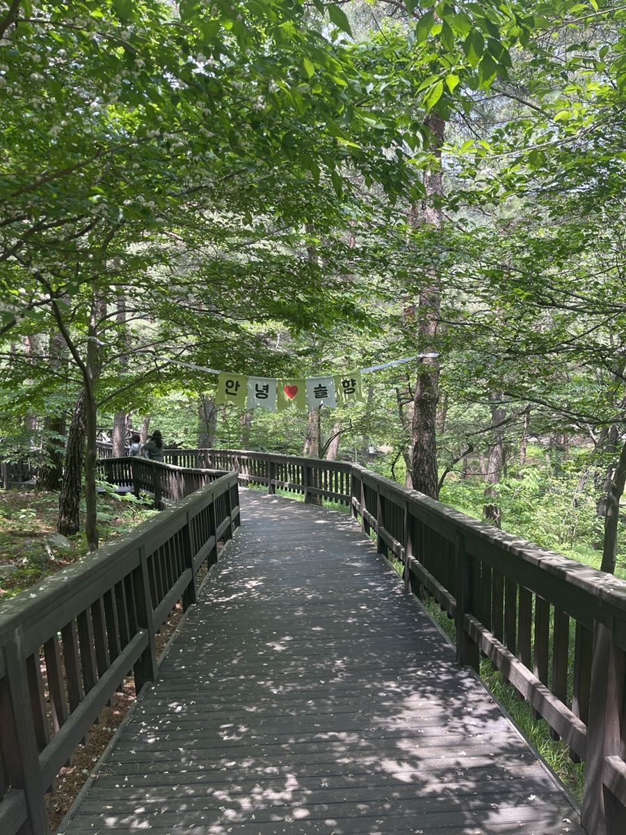 빼곡한 나무 사이로 피톤치드가 뿜뿜하는 데크길을 걷자니 이야말로 힐링여행. 오늘은 육아 조력자가 많다 보니, 아주 살짝 혼자만의 여유를 가져보기도 한다.