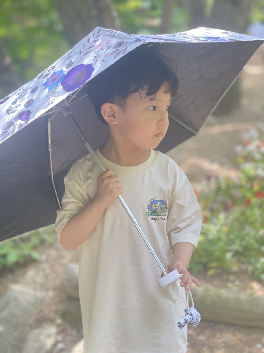 왠만하면 그냥 다닐만한 녀석도 날이 날이다 보니 꽤 더운가보다. 고모의 양산을 마치 자기것인양 뺏어들고 다닌다.