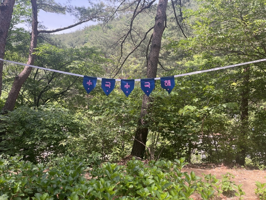 후덥지근한 날씨 덕에 흐르는 땀을 식히기 위해 숲속 산책로로 들어섰다. 나무데크로 산책길이 만들어져 있으니, 아이와 산책하기에도 좋다. 유아 숲체험으로는 아주 제격인 솔향수목원. 군데군데 제주에서 흔히 보이는 가랜드가 달려 있으니 왠지 더 반가운 느낌.