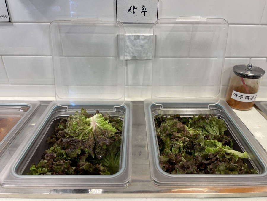 파절이가 상당히 아쉽다. 삼겹살 집의 그런 매콤새콤한 양념일 줄 알았는데, 그냥 양파절임에 사용되는 그런 간장베이스의 양념이다. 마늘로 인해 살짝 매운맛이 있긴 하지만.. 고추가루의 매콤함이 아니다 보니.. 많이 아쉽당. 그냥 상큼한 맛으로 곁들여야 할 듯.