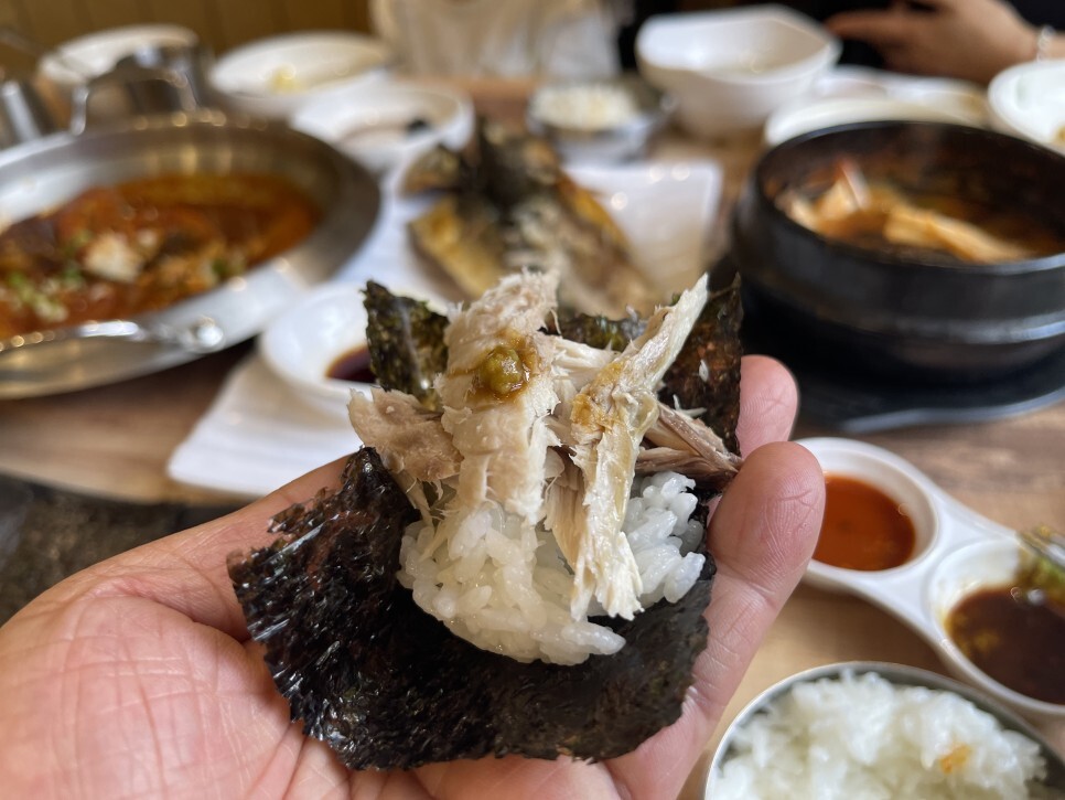 어쩔 수 없이 게밥쌈을 포기하고 고등어회와 갈치회를 간장에 찍어 먹는데.. 신선함이 입안가득.... 비린내 없이 먹을 수 있어 좋고 신선해서 더 좋고, 얇게 썰려 나왔음에도 먹는 식감마저도 좋다. 연예인 맛집인 이유가 있네..
