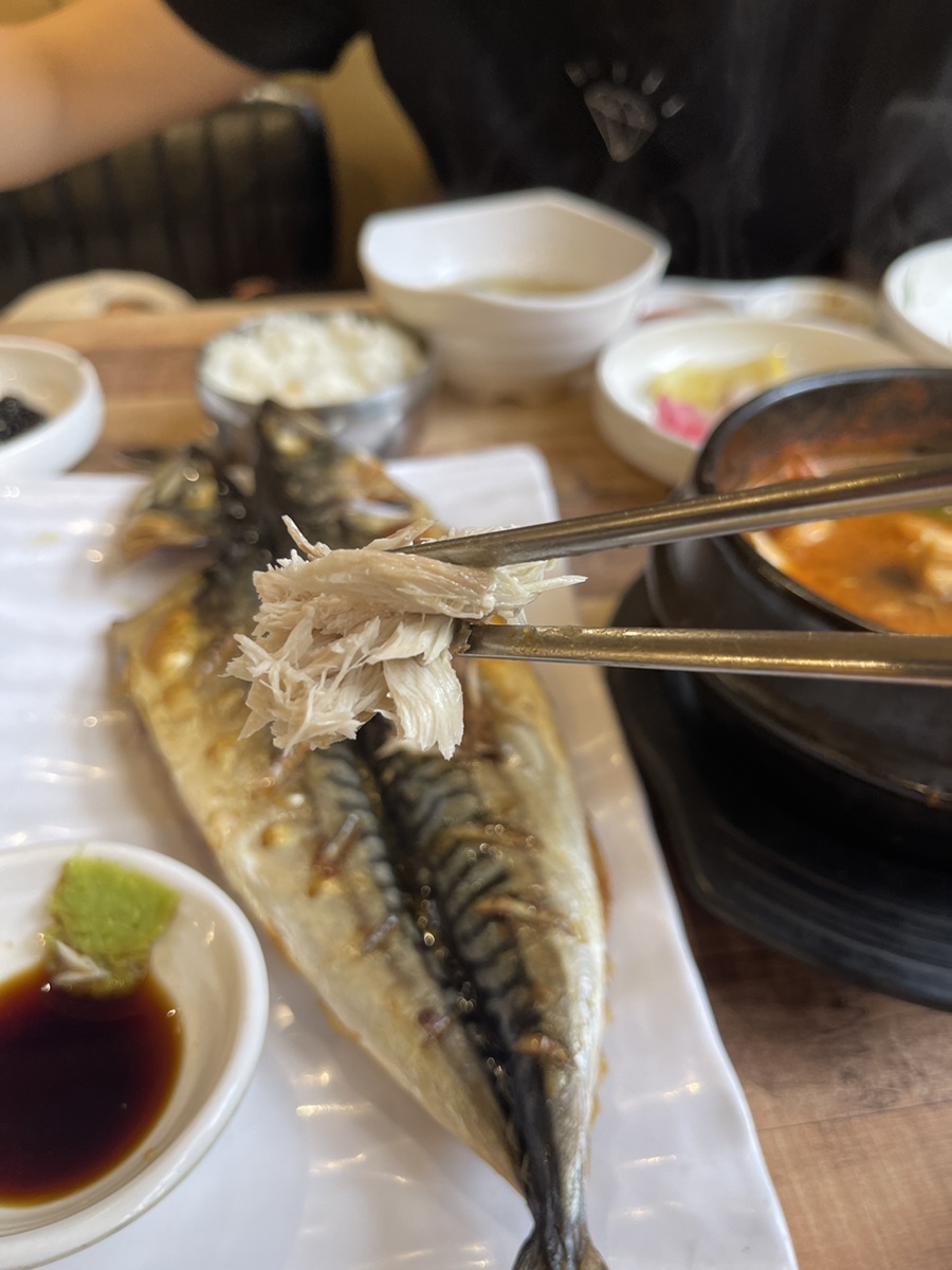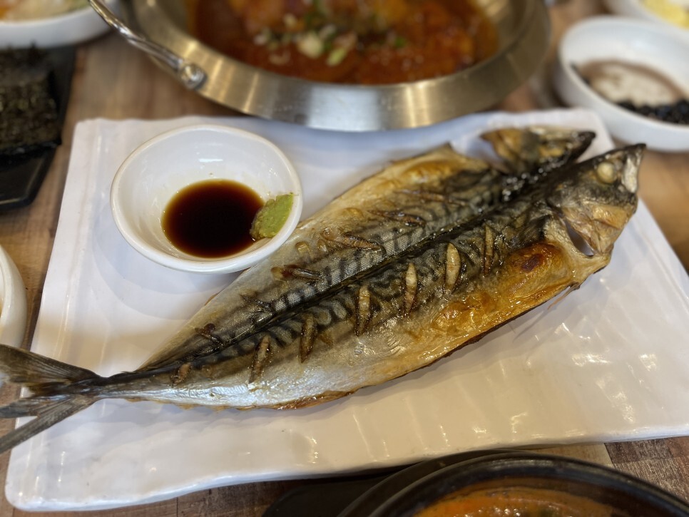 고등어구이가 거기서 거기라고 생각할 수 있지만, 등푸른 껍질에 젓가락을 집어 넣었을 때 바사삭하고 터지는 소리와 비쥬얼이 대박이다. 얼마나 신선한 고등어를 얼마나 잘 구워서 내놓았는지 알 수 있는 순간.. 고등어는 역시 노르웨이산!! ^^ 그런데.. 진짜 잘 구웠다.