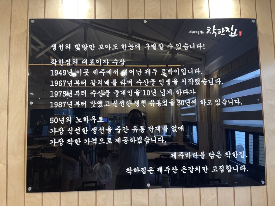 제주토착민으로 수산물 중개부터 시작하여 착한 가격으로 대접하겠다는 착한집의 설명. 착한집이라는 가게이름의 유래를 알 수 있는 대목이다. 제주 연예인 맛집 착한집! 전참시 미우새에도 소개된 제주공항근처 맛집