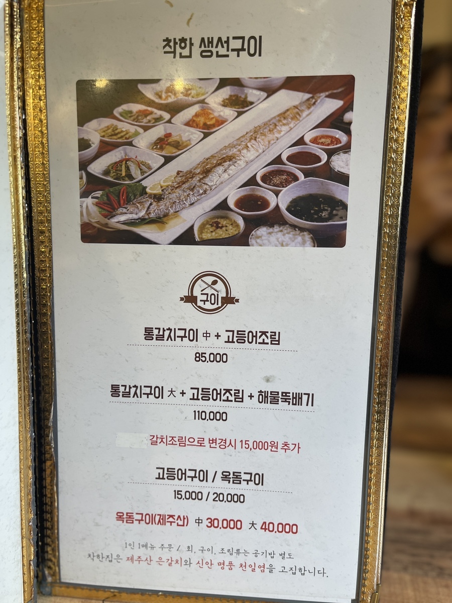 앞서 이야기한 것처럼 갈치와 옥돔 고등어 등 생물 역시 전국택배로 판매 중이다. 대부분의 원재료가 국내산을 사용하고 있으니 안심하고 먹을 수 있는 곳! 착한집! 와이프도 이게 가장 마음에 든다며.. 엄지척!