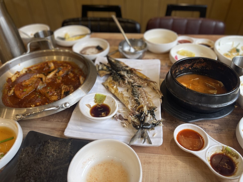 개인적으로 양념이 듬뿍베인 고등어조림의 무가 너무 좋아 고등어보다는 무를 더 많이 먹은 것 같다. 전참시 맛집이라고 불릴만 하다. 먹성 좋은 연예인 입이나 내 입이나 똑같지 않겠는가..