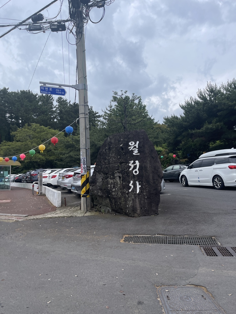 정실마을의 조그만 제주사찰 월정사. 동네의 조그만 사찰인데, 날이 날인만큼 오늘은 방문객이 꽤 많다. 드넓은 주차장이 만차가 되었고, 도로변에도 소원빌기하러 온 불자들의 차량이 많다.