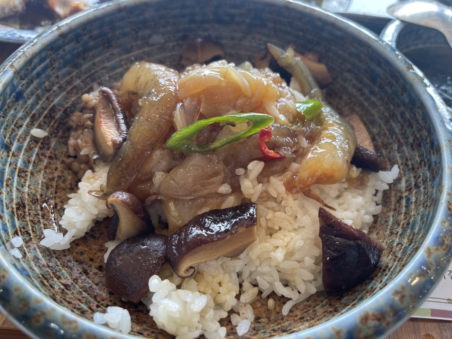 새우장을 먹기 좋게 손질해놓고나니 숨어있던 표고버섯장도 보인다. 먹을 만한 모둠장이 많으니 추가로 밥을 시키길 정말 잘한 것 같다.