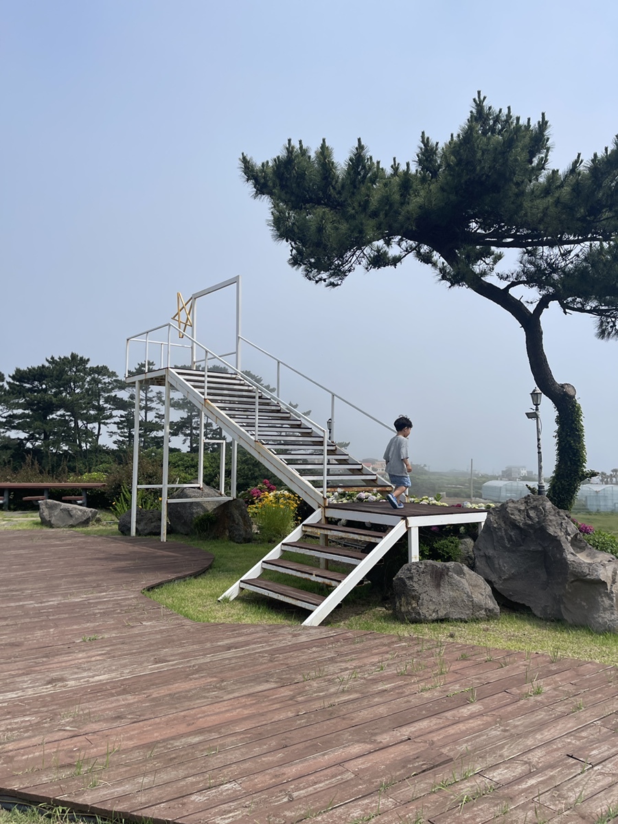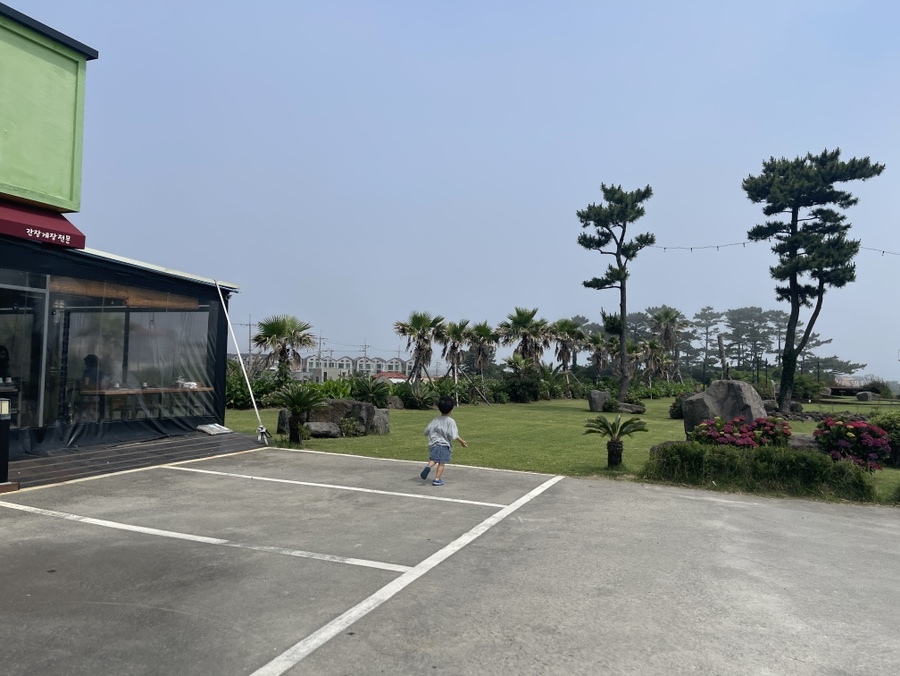식사 후엔 라온이와 함께 옆에 있던 정원에서 즐겁게 뛰어놀기까지. 아이와 가볼만한 제주동쪽 음식점 보배쌤 보리김치와 게장. 완전 강추!