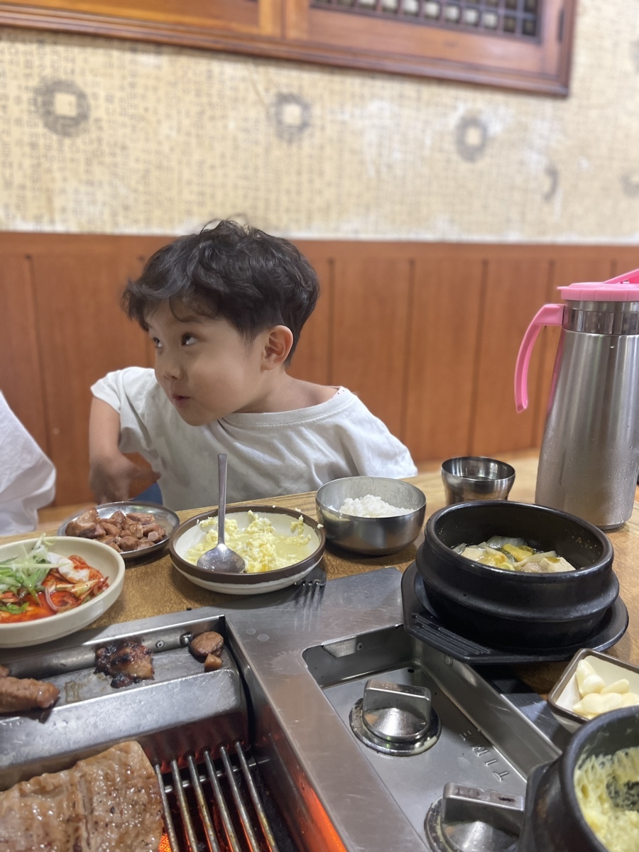 옆자리에서 돼지갈비를 먹고 나가던 형아들이 아이스크림을 푸는 모습을 보면서, 자기도 먹고 싶다고 하니 형아들이 귀엽다며 아이스크림을 퍼주었다. 기분이가 더 좋아진 녀석. 배불리 먹고.. 아이스크림으로 입가심까지.. 오늘 아주 제대로 만끽하는구나~