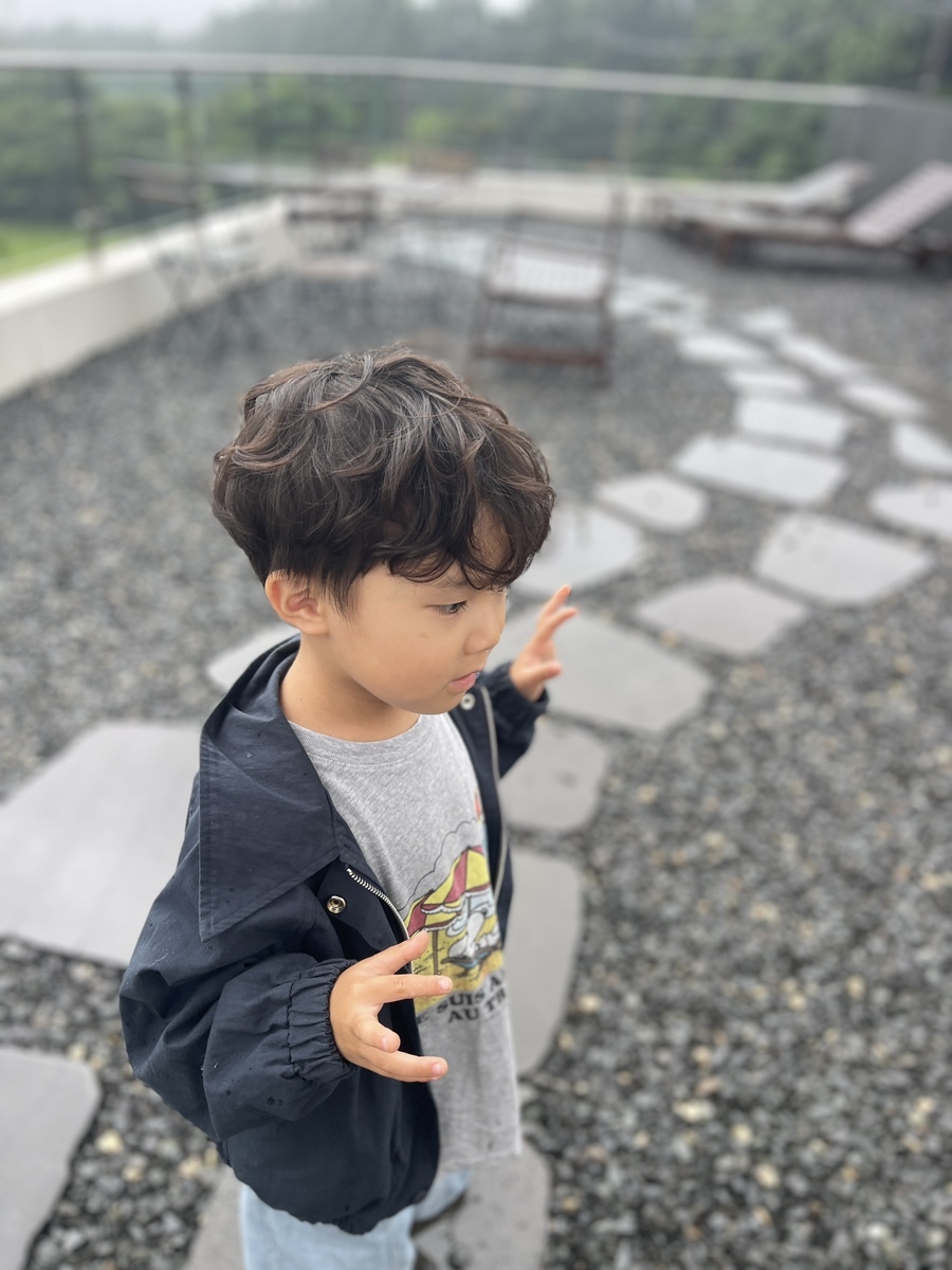 맛나게 먹은 다음 살짝 휴식이라도 취하려고 했는데, 조금 전 아빠가 다녀온 루프탑에 자기도 한번 가보고 싶다며 졸라대는 라온이. 계단을 올라서 밖으로 데려다 주니, 우산도 자기가 쓰고 다니고 싶다면서 루프탑 이곳저곳을 돌아다녀본다.