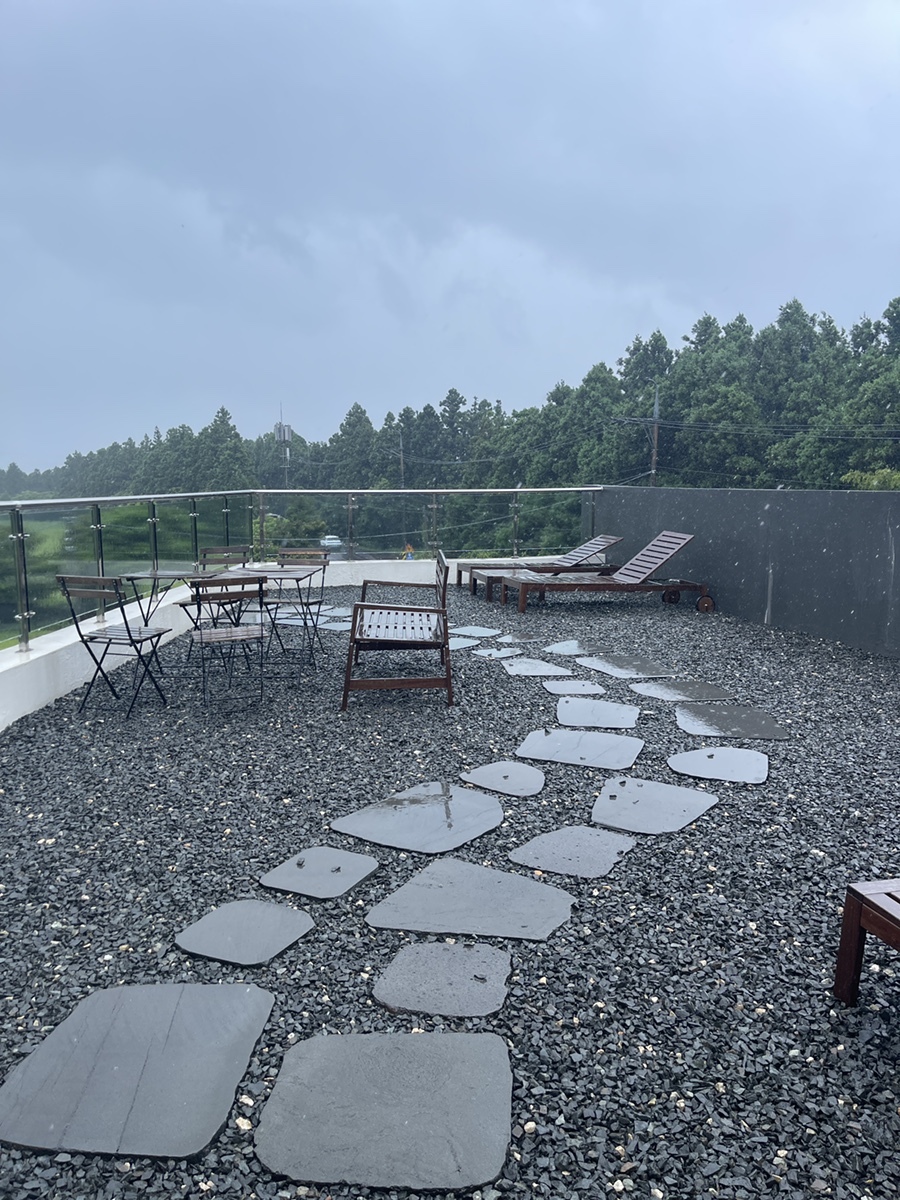 날씨만 좋았으면 루프탑에서 더 여유를 만끽하고 싶었지만, 비바람이 몰아치니 더 있을 수가 없다. 무끈모루숲 무료체험도 정말 솔깃했는데.. 이 날씨에 들어갔다간 낭패일 것 같아 가지도 못하고... 너무 아쉬운 오늘...