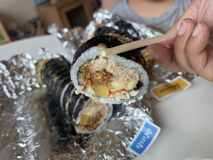 김밥이 상당히 두툼하다는 느낌을 받았는데, 포장을 뜯어보니 진짜 푸짐한 김밥이다.