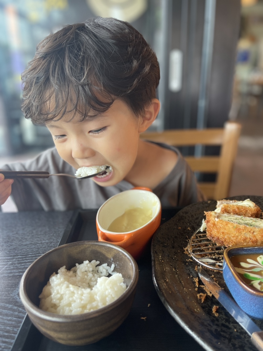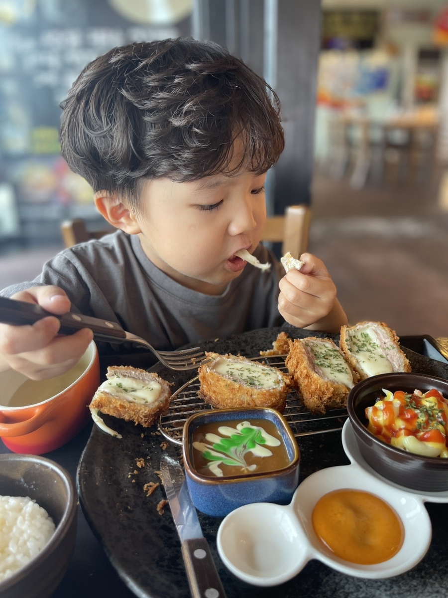 그리고 라온이가 먹을 흑돼지 치즈안심까스. 메뉴사진과 똑같이 나오니까 좋다.