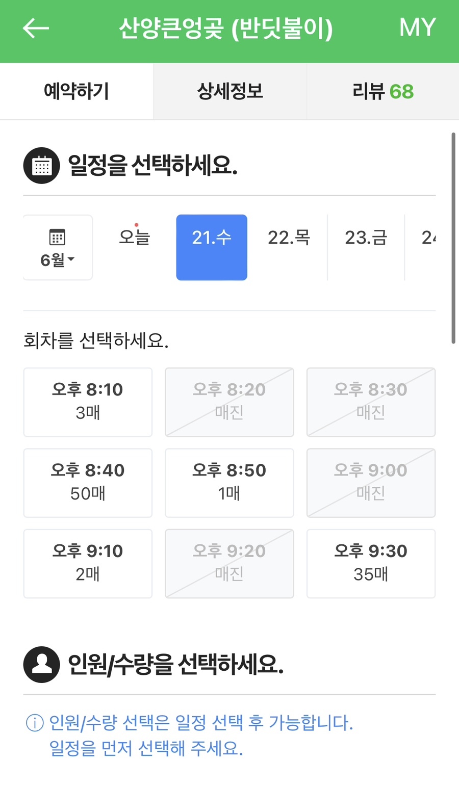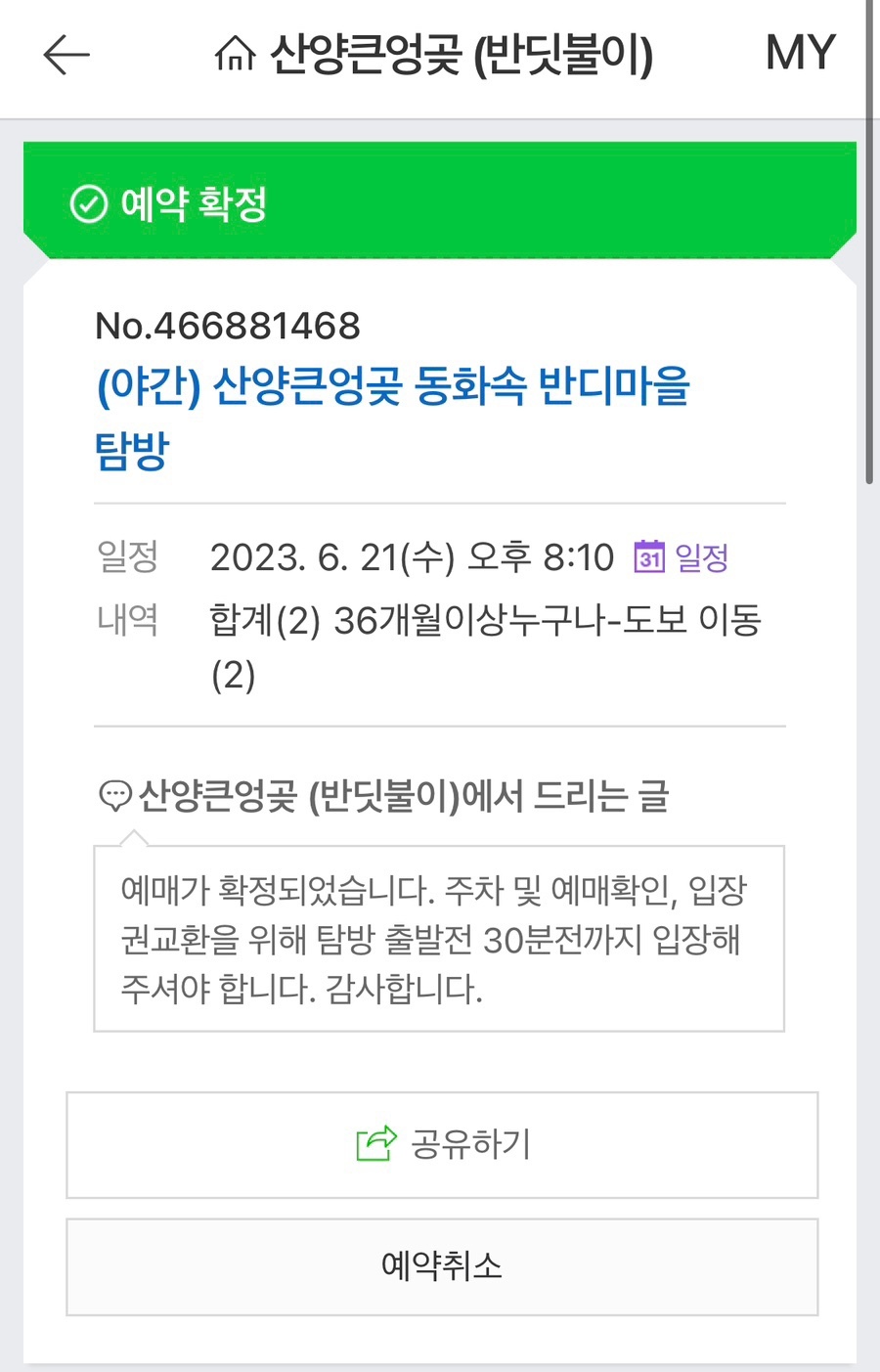 산양큰엉곶을 검색해서 예약버튼이 활성화되면 탐방시간을 선점해야 한다.