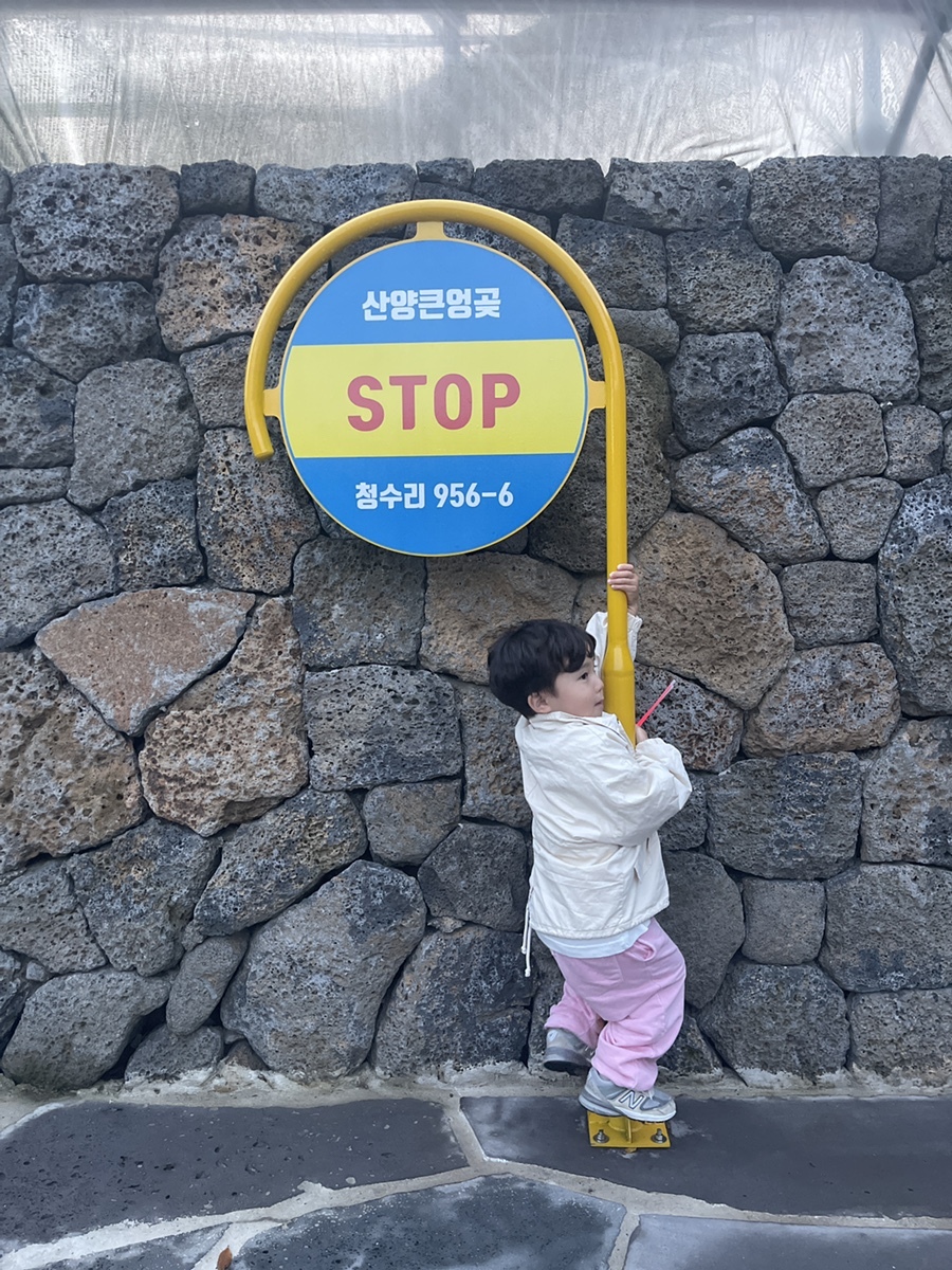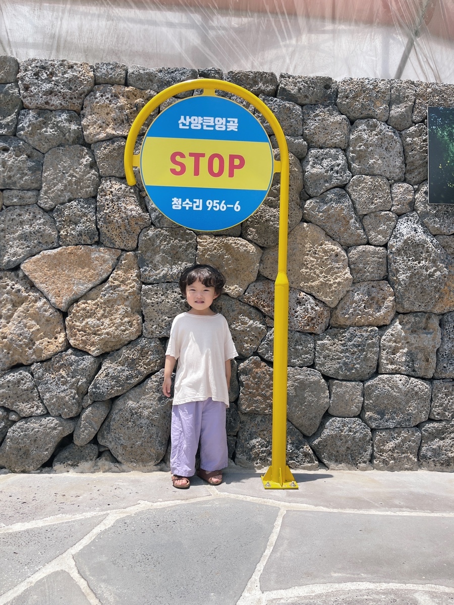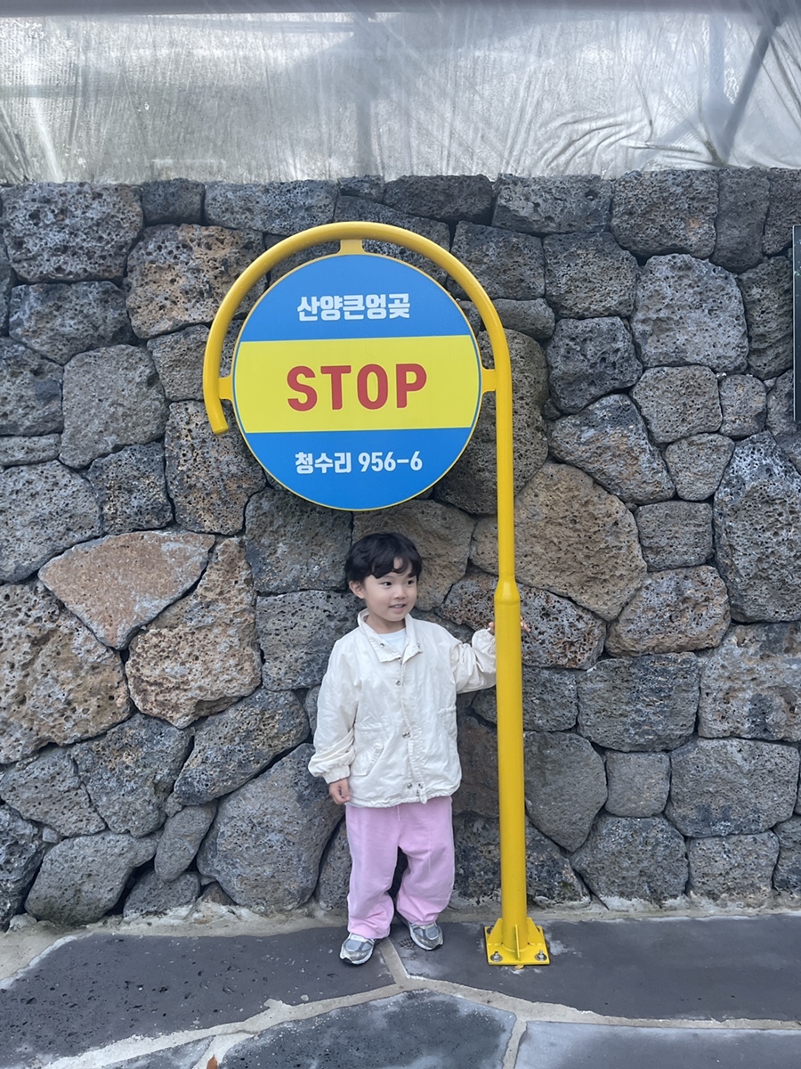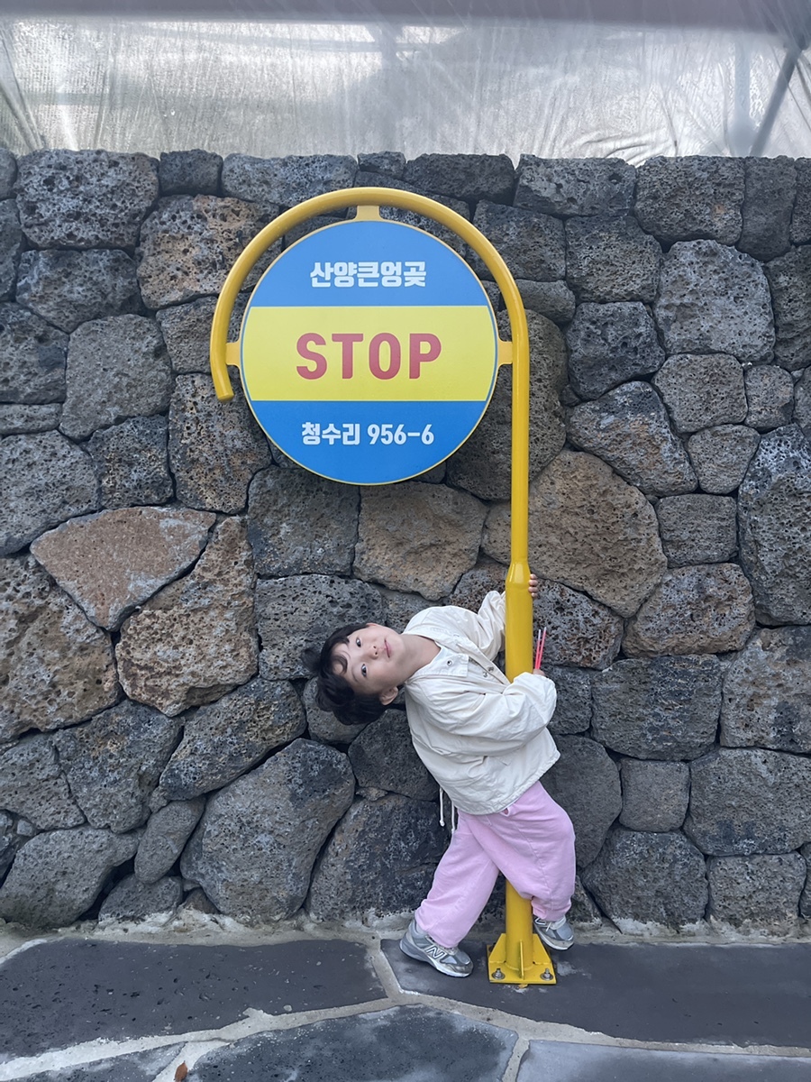 그러고 보니 작년 방문당시랑 비슷한 톤의 옷이다. 1년간 그래도 부쩍 자란 모습이다. 처음엔 표지판에 머리가 닿아서 정말 많이 컸다 싶었는데... 뒷꿈치를 몰래 들고 있었다...