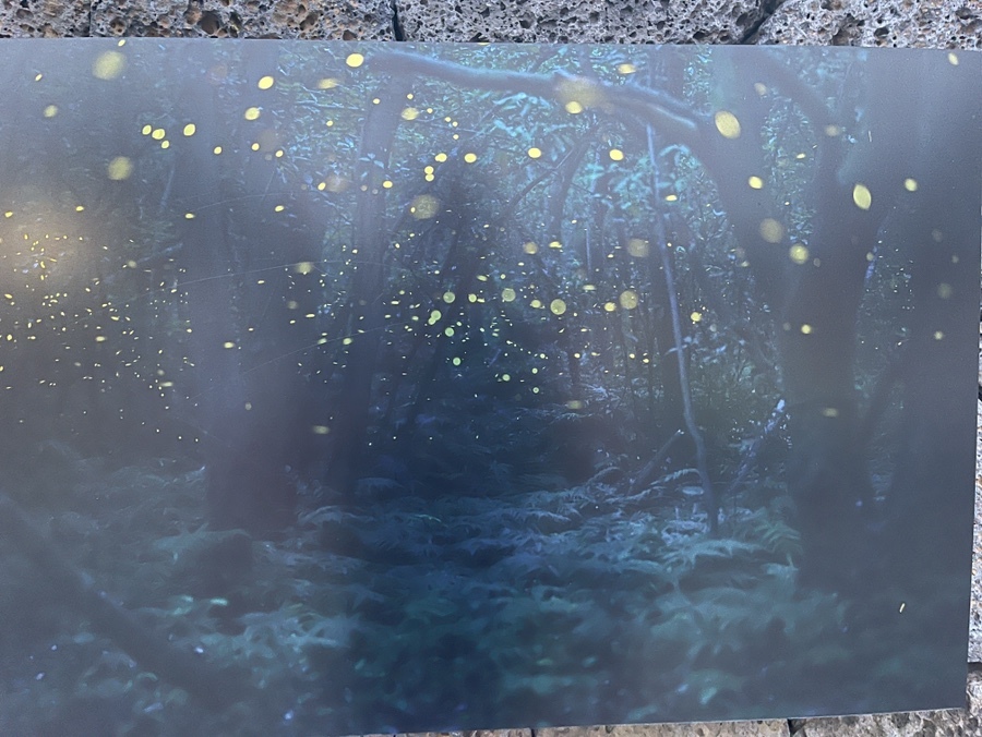 반딧불이 체험 안내를 위해 홍보용으로 부착되어 있던 반딧불이 사진을 찍어본 것인데, 이정도로 많이 보이는 것을 이번엔 체험해보지 못했지만 체험 탐방로 시작부터 마지막순간까지 반딧불이는 쉼없이 나온다. 그리고 중간엔 숲속 깊숙이까지 날라다니는 반딧불이가 많긴 해서 홍보사진과 살짝 비슷할 정도로 반딧불이가 많이 보이는 곳들도 나오긴 한다.