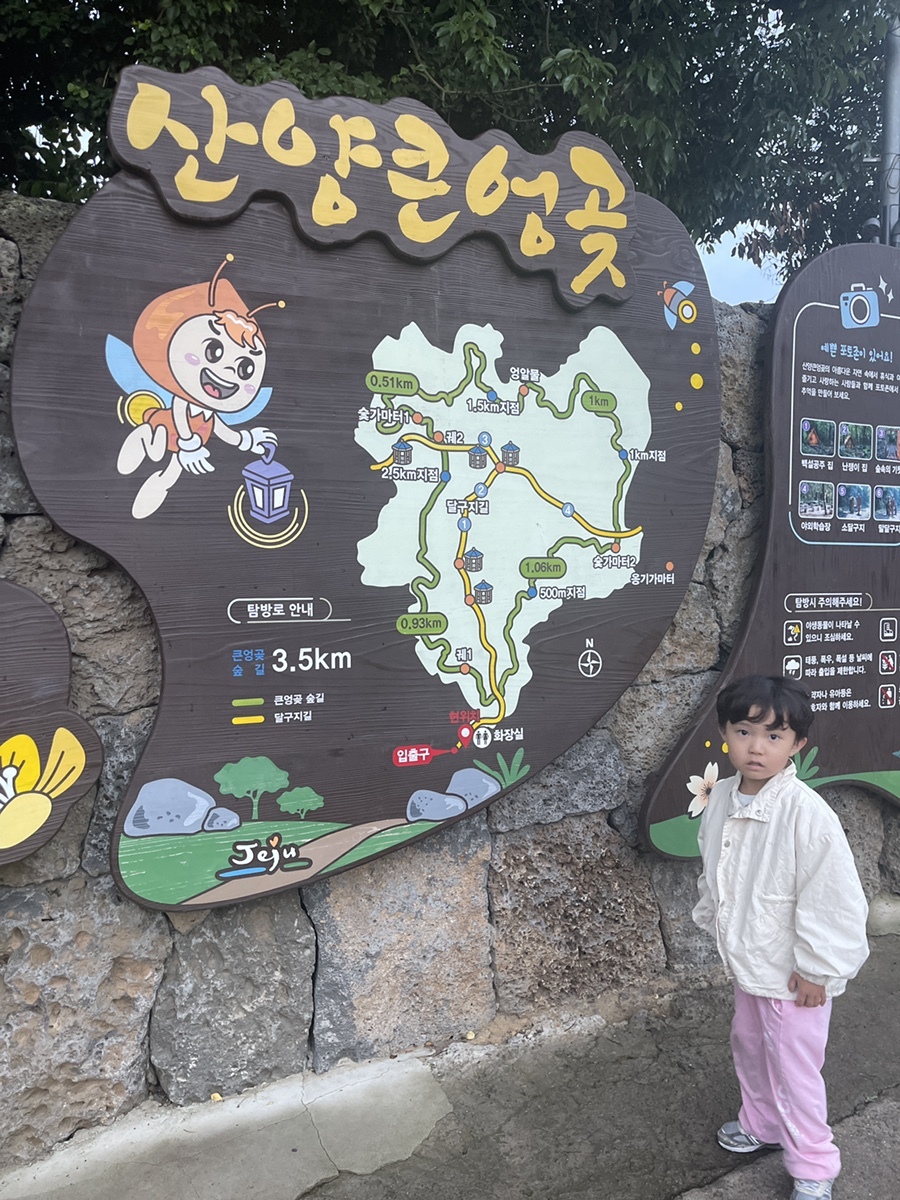 오늘도 산양큰엉곶 안내도에서 현위치 확인부터 하는 라온이.