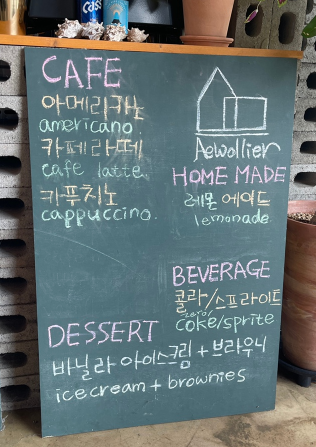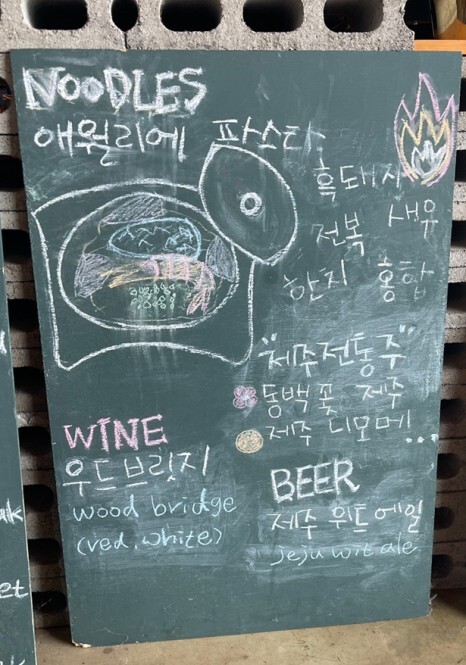 시그니처 메뉴는 애월리에파스타와 뿔소라 아란치니라고 한다.