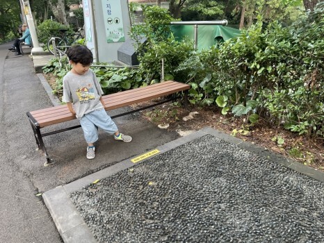 벤치에 앉아서 땀을 식혀보는 아드님