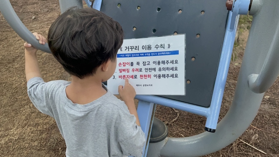 저녁을 먹은 뒤 소화도 시킬 겸 저녁 산책이나 나가볼까 싶은데, 놀이터가 가고 싶은 아들과 가까운 오름에라도 오르고 싶었던 아빠의 묘한 신경전. 결국 어렵게 설득해 아이와 오르기 쉽다는 별도봉으로 향했다.