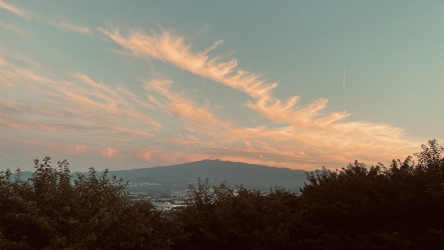 붉은 노을에 물들어가는 한라산의 모습이