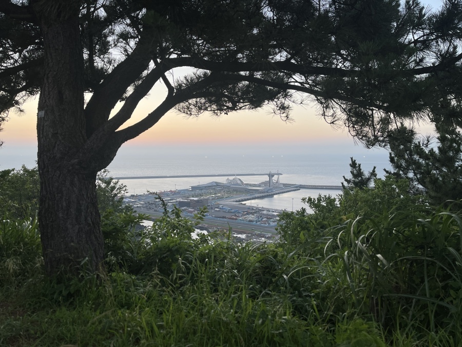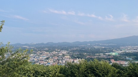 올라가는 길은 완전 급경사는 아니지만, 아이는 살짝 힘들어할 수 있을 정도의 경사이다. 한번에 너무 오르려하면 쉽게 지칠 수 있으니 조금씩 천천히 주변 풍경도 보면서 걸어갔다. 조금만 올라도 제주항의 모습도 보인다.