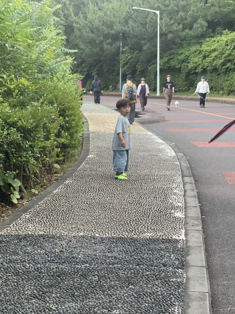 맨발로 자갈밟기 하는 구간이 보인다.