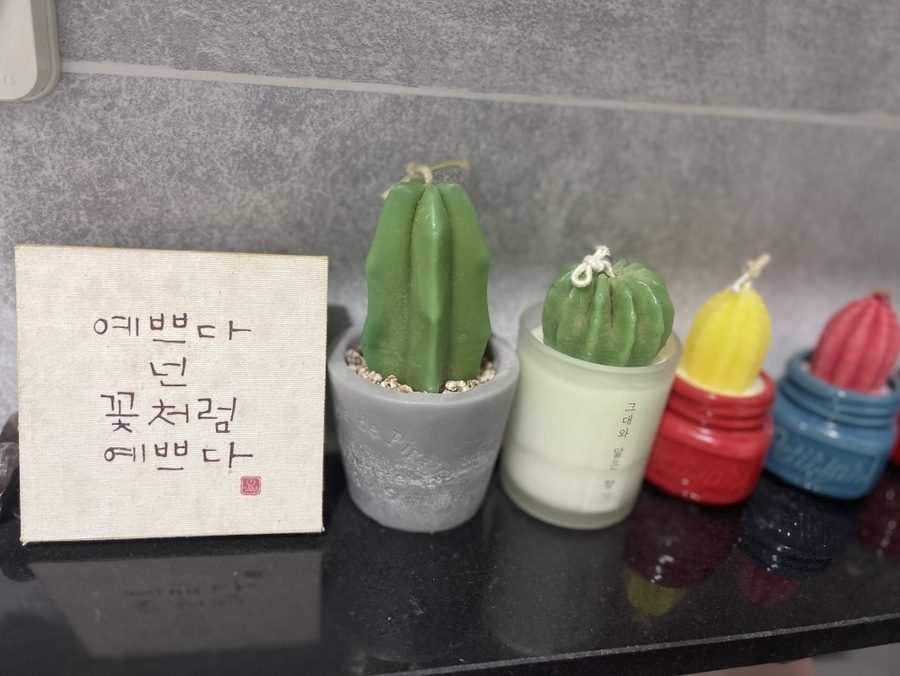 샵으로 들어가니, 첫느낌은 마치 타이마사지를 받으러 온 듯한 분위기였다. 은은하게 풍기는 좋은향과 조명도 은은하고 뭔가 차분해지게 만드는 이런 분위기 자체가 사람을 힐링하게 만드는 것 같다. 꽤 다양한 피부관리용품과 기기들도 보이고 잠시 후 내가 눕게 될 침대도 참 편안해 보여서 좋다. 이런 곳이 아빠와 마찬가지로 처음인 라온이도 어리둥절한 표정.. 귀여워..