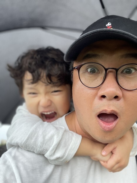 우산을 들고 있어 안기엔 벅차 업어주었더니 그게 그렇게나 좋나보다.