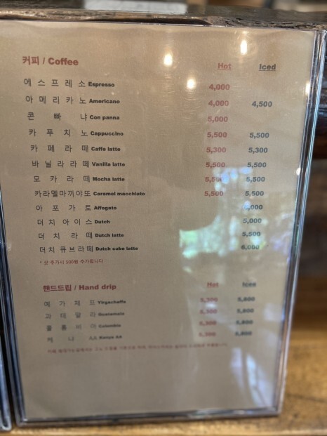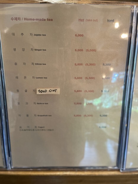눈꽃빙수와 디저트케익뿐만 아니라 음료와 차류의 가격도 정말 착하다. 아무래도 대학교 앞에 있는 디저트카페이다보니 가능한 가격대이지 않을까 싶다.