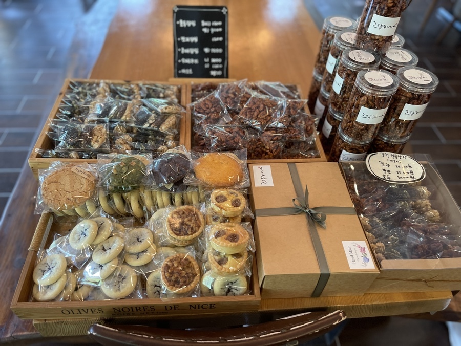 꾸덕꾸덕한 브라우니와 견과류 그리고 다양한 쿠키와 파이들이 준비되어 있다. 당떨어질 시간이라 지금은 뭐든 맛있을 것 같은...