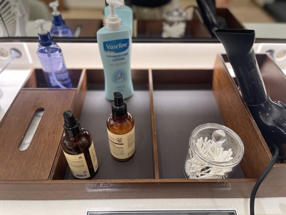 열탕과 냉탕이 있어서, 물놀이로 지친 몸을 풀어주기에 딱 좋다. 오후 2~3시 사이엔 전부 물놀이 중인 사람들이 많아서 사우나엔 사람이 하나도 없다. 사우나도 전세낸듯 아이와 둘이서 물놀이하듯 즐길 수 있어서 좋다. 객실에 준비되어 있던 것과 마찬가지로 샴푸, 컨디셔너, 바디워시 등이 전부 준비되어 있다. 별도로 준비하지 않아도 씻는데 아무런 문제가 없다.