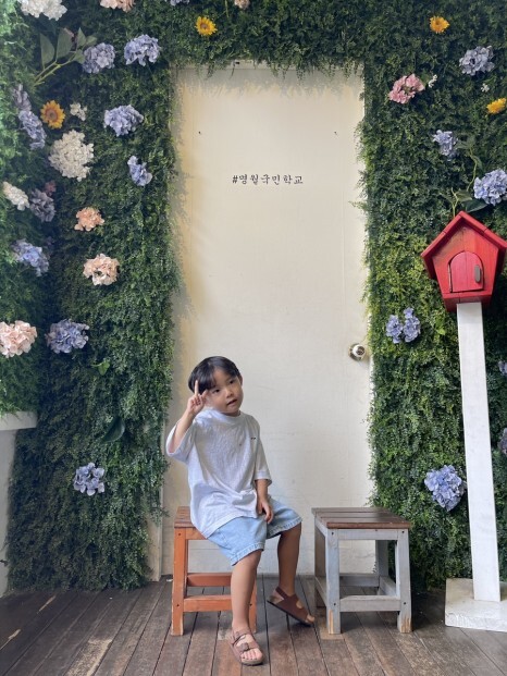 우리집 키즈모델께서 그냥 지나칠 수 없으니 사진명소에 살포시 앉아서 포즈를 취한다. 폼 미쳤다잉~