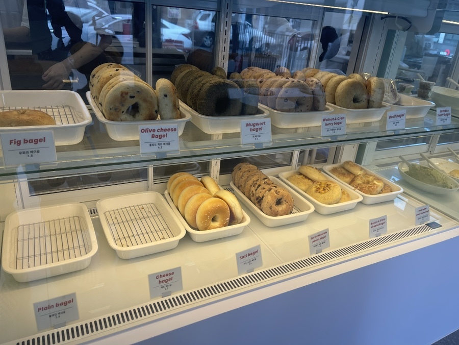 입장하자마자 베이글 냄새가 코끝을 간지럽힌다. 진열대엔 베이글 종류와 크림치즈 종류가 나란히 줄 서 있다.