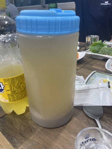 불판엔 덩그러니 기름만 남았다. 고기 몇점은 결국 옆테이블에 넘겨줄 수 밖에 없을 정도로 고기양이 엄청 많았다. 볶음밥도 마무리로 먹어줘야 하는데, 너무 배불러서 포기! 시원한 식혜를 후식으로 내어주는데, 역시나 고기접시만큼 스케일이 남다르다. 배터질 지경이지만.. 놓칠 수 없으니 또 꿀꺽꿀꺽.