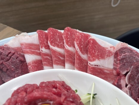 육회+육사시미가 있느냐 없느냐의 차이로 보인다.