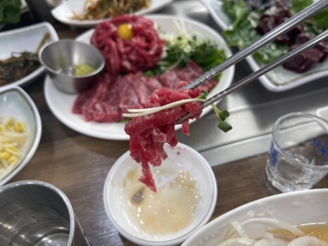 육사시미도 질이 꽤 괜찮다. 최애 육사시미집의 그것과 비교하면 약간 아쉬운 부분도 없지 않지만, 이정도면 훌륭하다. 생고추냉이 올려서 먹어주니 존맛!