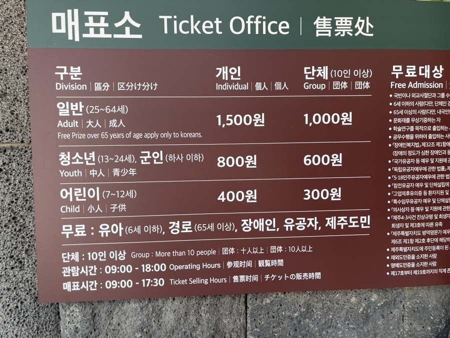 제주도민/유아 무료입장