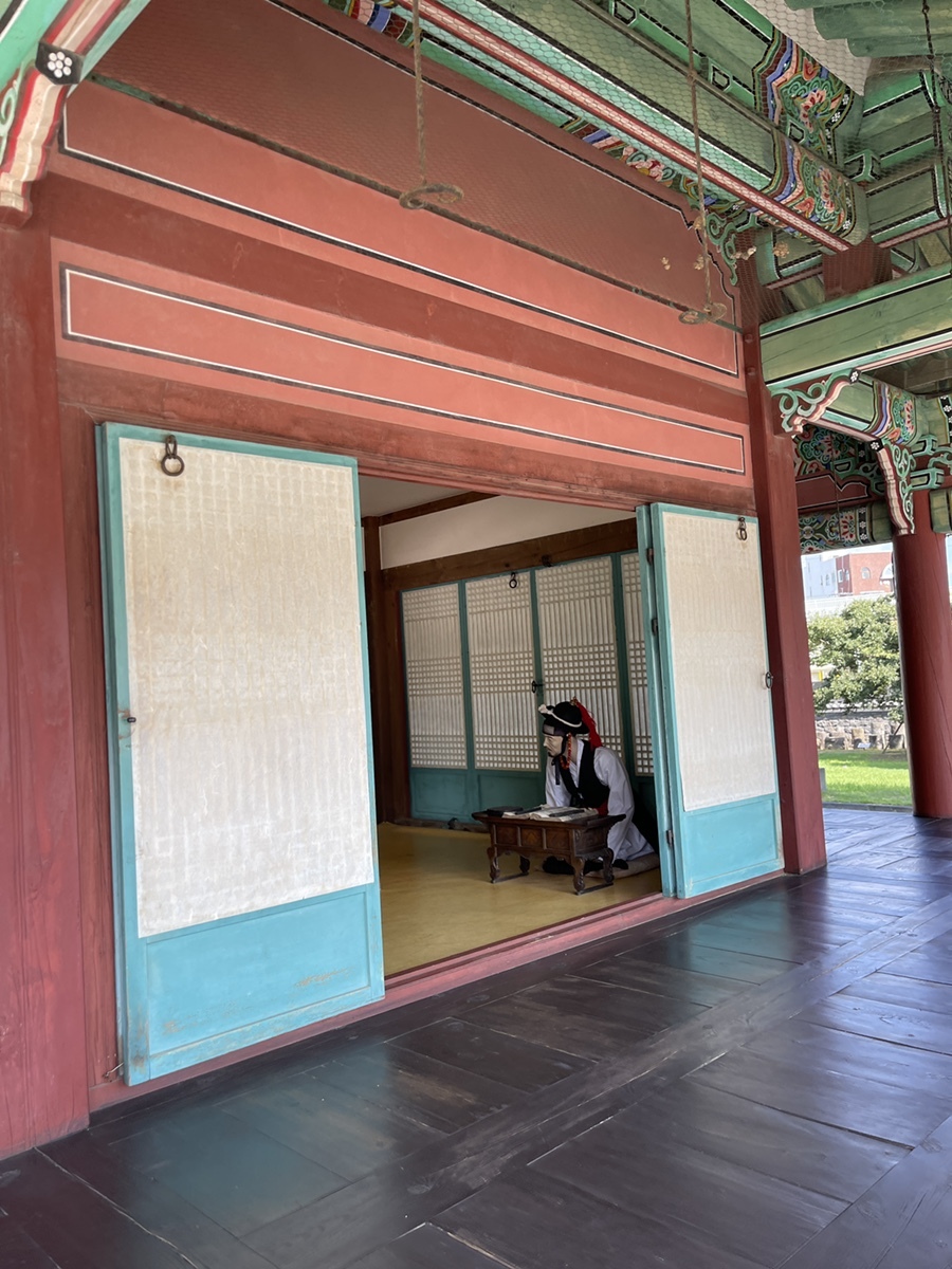 요즘 서울 고궁투어에 한복입고 관람하는 유행이 있던데, 이곳 제주목 관아에도 외국인 여행객들이 한복을 곱게 차려입고 들어오는 경우가 꽤 있다. 우리도 그런거 한번 해보면 좋지만, 나들이 삼아 나온거라 당장은 힘들어서 살짝 아쉬웠는데, 이렇게 관복체험을 할 수 있게 되어 있어서 좋다. 조금 크긴 했지만, 나름 힙하게 입고 찍을 수 있어서 멋진 포즈와 함께 찰칵!