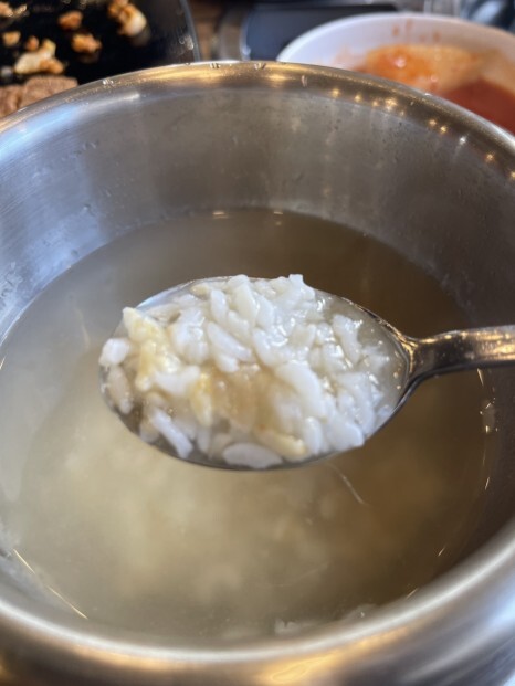 고니와 함께 떠먹어보는 동태전골. 진짜 맛있다. 국물 맛은 약간 심심한 편이다. 원래 쎈간을 좋아하지만, 이런 심심함은 나쁘지 않다. 계속 끓여먹는 전골이다보니 나중엔 정말 딱 맞는 간이 될 수 있기에 처음의 심심함 너무 좋다. 국물을 부담없이 후루룩 먹을 수 있는 것도 참 좋다. 게다가 동태살도 어쩜 이렇게 부드러울 수 있는지.. 그냥 존맛탱이다. 밥을 슥삭 비벼먹는 맛이 너무 좋아, 땀을 연신 흘려가면서 먹었다.